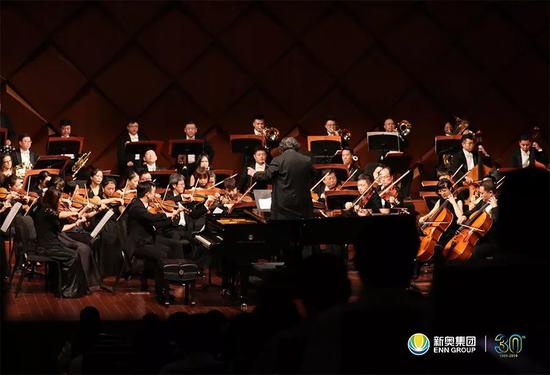 8月6日晚,在丝路中心音乐厅,一场长达70分钟的盛大音乐会成功举行。交响序曲《红旗颂》、钢琴协奏曲《黄河》、《新奥交响曲》轮番奏响,气势磅礴的音乐旋律,如同波澜壮阔的奋斗史诗,动人心弦、让人沉醉。其中,《新奥交响曲》以严谨恢宏的奏鸣曲结构和丰富细腻的音乐抒怀,描绘出新奥忠于祖国、服务人民的崇高形象和新奥人不负时代、砥砺前行的精神风貌。音乐会由国际华人指挥大师汤沐海、朗诵表演艺术家瞿弦和、旅德青年钢琴家万捷旎和天津交响乐团联袂奉献。音乐之美、奋斗之美,激励着新奥人永葆创业激情,在成就生态新奥的过程中不断建功立业,无愧于新时代。