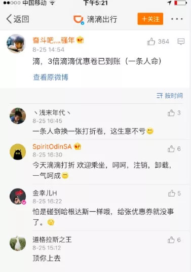相比之下,这似乎是滴滴的进步。然而,3倍的人身伤害赔偿与相应的法律责任,对于滴滴这样的独角兽企业来说,无异于九牛一毛。有愤怒的网友套上滴滴的面具说,“ 你尽管死,我只管赔。”
