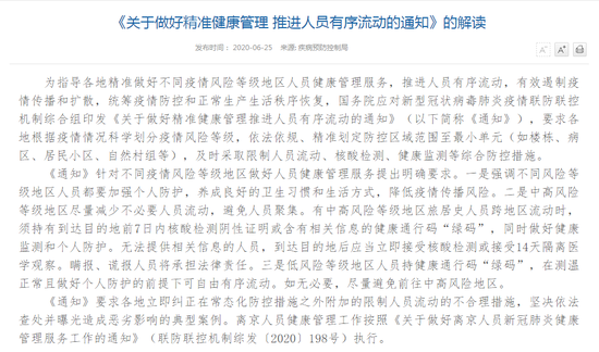 《关于做好精准健康管理 推进人员有序流动的通知》的解读