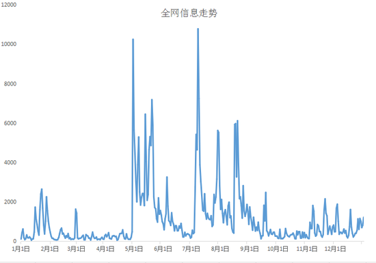 从信息量走势图来看,两家企业涉财务问题一直备受关注,使得全年信息走势波动不断,该信息爆出后便引发大范围关注达到第一个信息量峰值。随后7月5日,康得新收到中国证监会行政处罚事先告知书,称其公司股票可能被实施重大违法强制退市,再次引发关注,达到第二个信息量峰值。