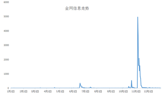 从信息量走势图来看,6月格兰仕首次表示在天猫平台的搜索端陆续出现异常,导致正常销售遭遇严重影响后并未引发关注。而在双十一之前,格兰仕官方微博发布相关信息后,才引发大范围关注达到信息量峰值。