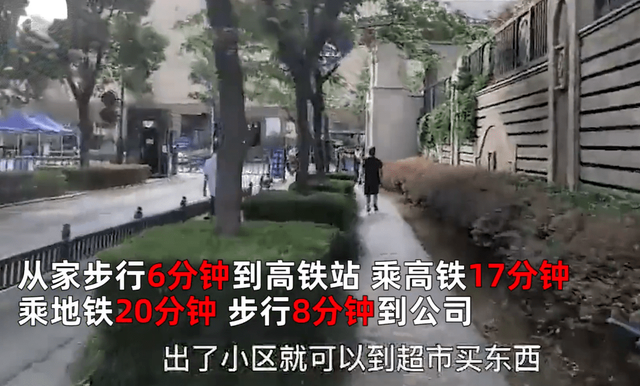 她透露从家步行6分钟到高铁站,乘高铁17分钟,乘地铁20分钟,步行8分钟到公司,一趟耗时50分钟,比很多同城通勤的同事用时还短。