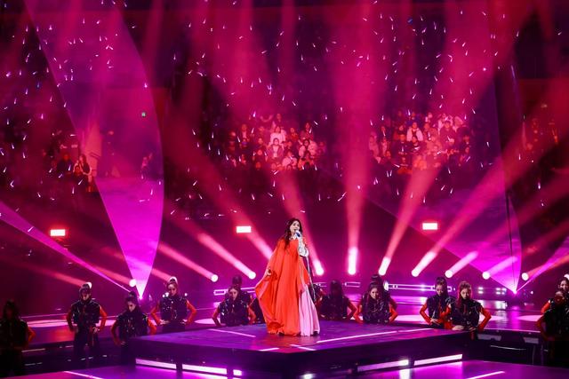 在第一篇章“桃红”中,歌手GAI(周延)作为“国风典乐官”霸气开唱,穿越华夏五千年,召唤出一条气势磅礴的龙横空腾跃。《兰草花》《沧海一声笑》唱出款款深情,唱出快意江湖。梁咏琪用温柔的声线,演绎爱情三部曲,展现从悸动到浓烈再到释然的情感旅程。《胆小鬼》《中意他》《短发》让无数资深歌迷梦回青春,让现场观众不禁跟唱。凝脂篇中,小鬼(王琳凯)幻身于古风漫画神级现场,以《逆流而上》《偏爱》《别叫我达芬奇》上演一幕缠绵悱恻、惊心动魄的绝美爱情。“缃叶”篇中,井胧在中国象棋的棋盘边走边唱,《骁》remix《太极》再现“楚汉之争”中楚河汉界两军对峙的恢宏场景,承载了英雄豪杰征战四方的气魄,呈现出太极“阴阳制衡”的微妙流转。《群青》篇中,Ella(陈嘉桦)以皮影戏、甲骨文和戏曲三种传统文化为元素,融入曲风迥异的摇滚、说唱和赛博朋克中,制造出强烈的碰撞效果和视听觉反差,勾勒出未来感的国潮意象。在《沉香》篇中,潘玮柏压轴出场,上演“宇宙玩家 反转地球”,将河南广播电视台经典IP“隐秘的秦陵”与多元的未来相结合,呈现“神秘秦陵”和“赛博秦陵”的古今反转,展现历史与未来的震撼对话,将现场气氛推向高潮,展现了东方审美的独特魅力。