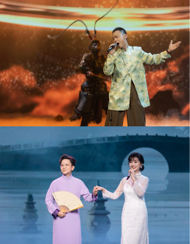 《葫芦兄弟》《舒克和贝塔》的编剧姚忠礼、《中国奇谭》总导演陈廖宇和《长安三万里》《白蛇》系列监制于洲齐聚一堂,这不仅是两代动画人的聚会,更是中国动画发展历程中一次特别的交汇。歌手戴荃携手游盈绮唱响《悟空》,融入《黑神话·悟空》独特元素的舞台让观众惊叹;赵雅芝携手王珮瑜共同吟唱出“青城山下白素贞……”,影视金曲和动画电影歌曲《浮生一白》的巧妙融合撩拨着我们共同的珍贵记忆。