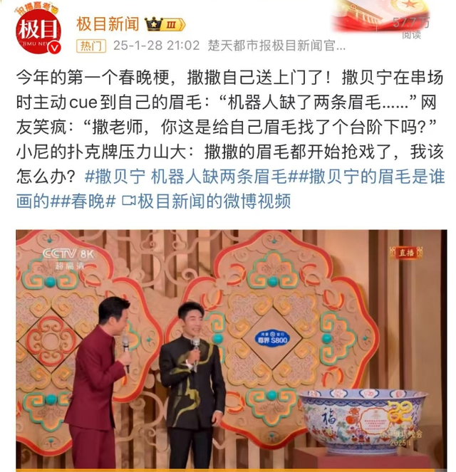撒贝宁在串场时主动cue到自己的眉毛。