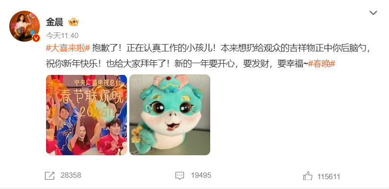 在昨天晚上的央视春晚舞台上