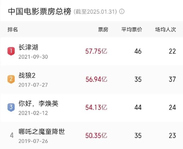 中国电影总票房排行前三为: