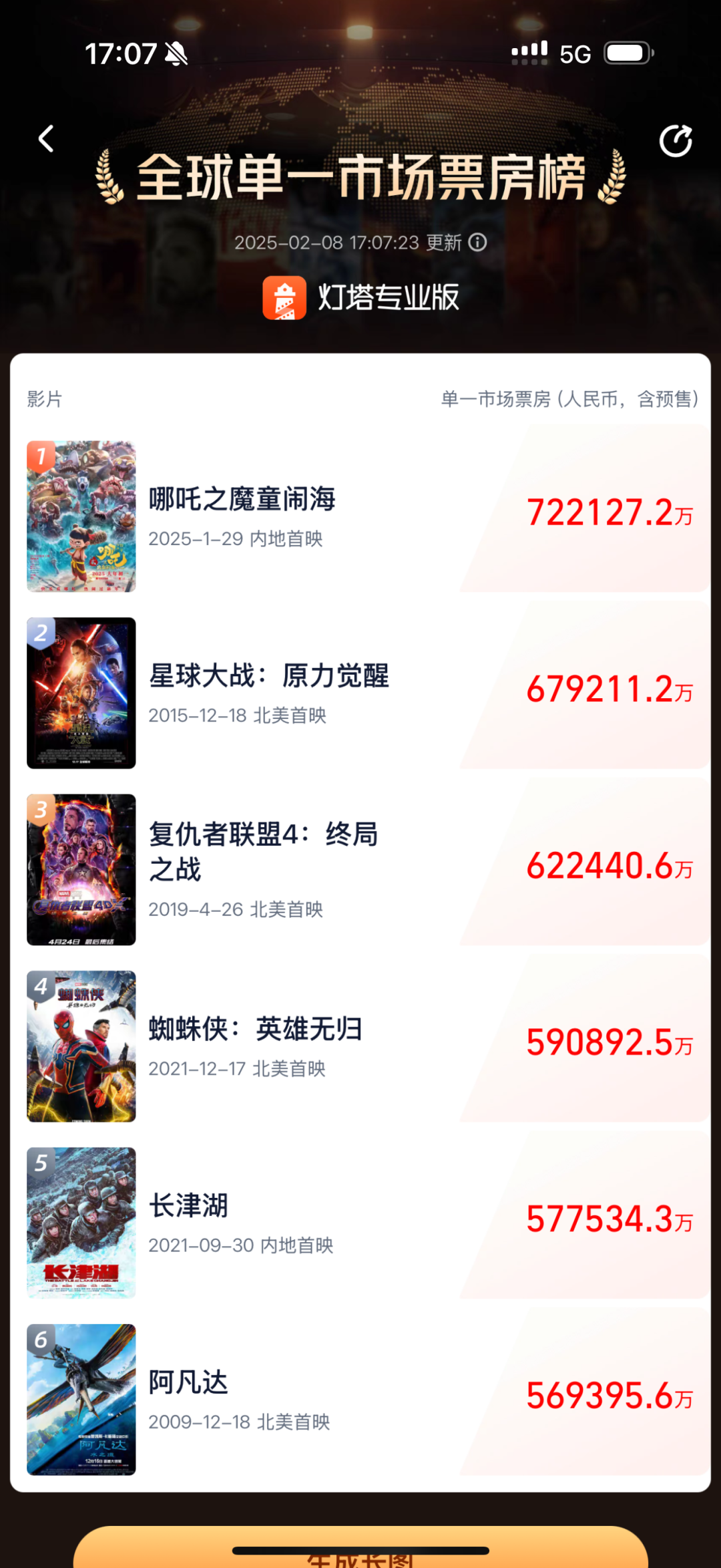 近日,正在中国热映的《哪吒之魔童闹海》电影,刷新世界影史票房纪录。截至2月8日17时07分,电影《哪吒之魔童闹海》票房突破72亿,登顶全球单一市场票房榜。