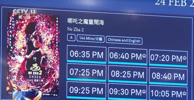总台记者马媛:在香港影艺戏院,《哪吒2》22日从早上9点第一场开始正式公映,8点多就已经有很多人在影院外翘首以盼。公映首日,部分重要场次门票早早就销售一空。而IMAX场更是座无虚席,不少影院还临时增加了IMAX场次,这足见《哪吒2》在香港的受欢迎程度。