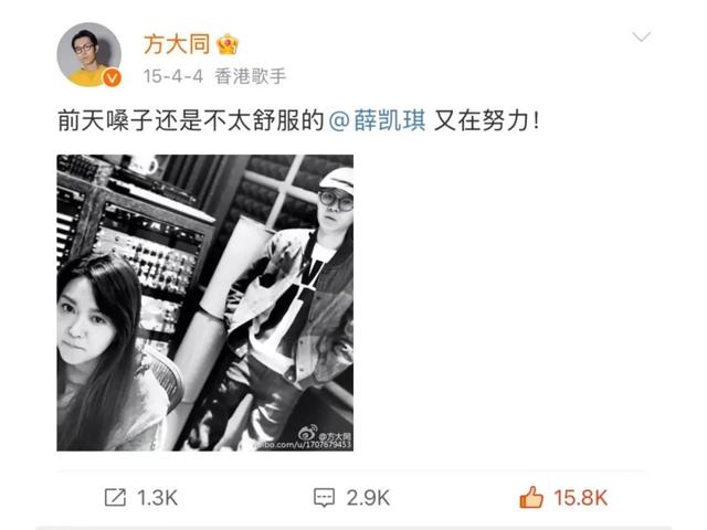 而薛凯琪一夜之间被骂上热搜,与她和方大同多年的感情有关——