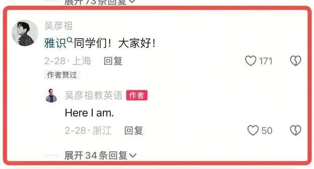在评论区,吴彦祖本人经过身份认证的账号也来留言互动,佐证了“吴彦祖教英语”账号的真实性。
