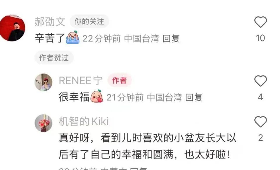 郝劭文在评论区给妻子留言“辛苦了”,而太太则回应一句“很幸福”。