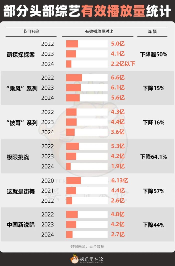 - 播放量暴跌:像《极限挑战》《乘风破浪的姐姐》这些老牌综艺,最新一季播放量比前几年少了50%以上,有的甚至跌了60%-70%。