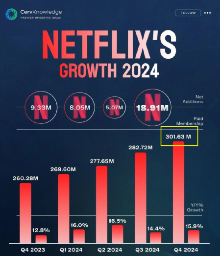 截至2024年,Netflix的全球订阅用户总量突破3亿,成为流媒体行业的领先者。而其依靠订阅量而非广告盈利的模式,也让Netflix的内容更加纯粹,更加关注内容本身。