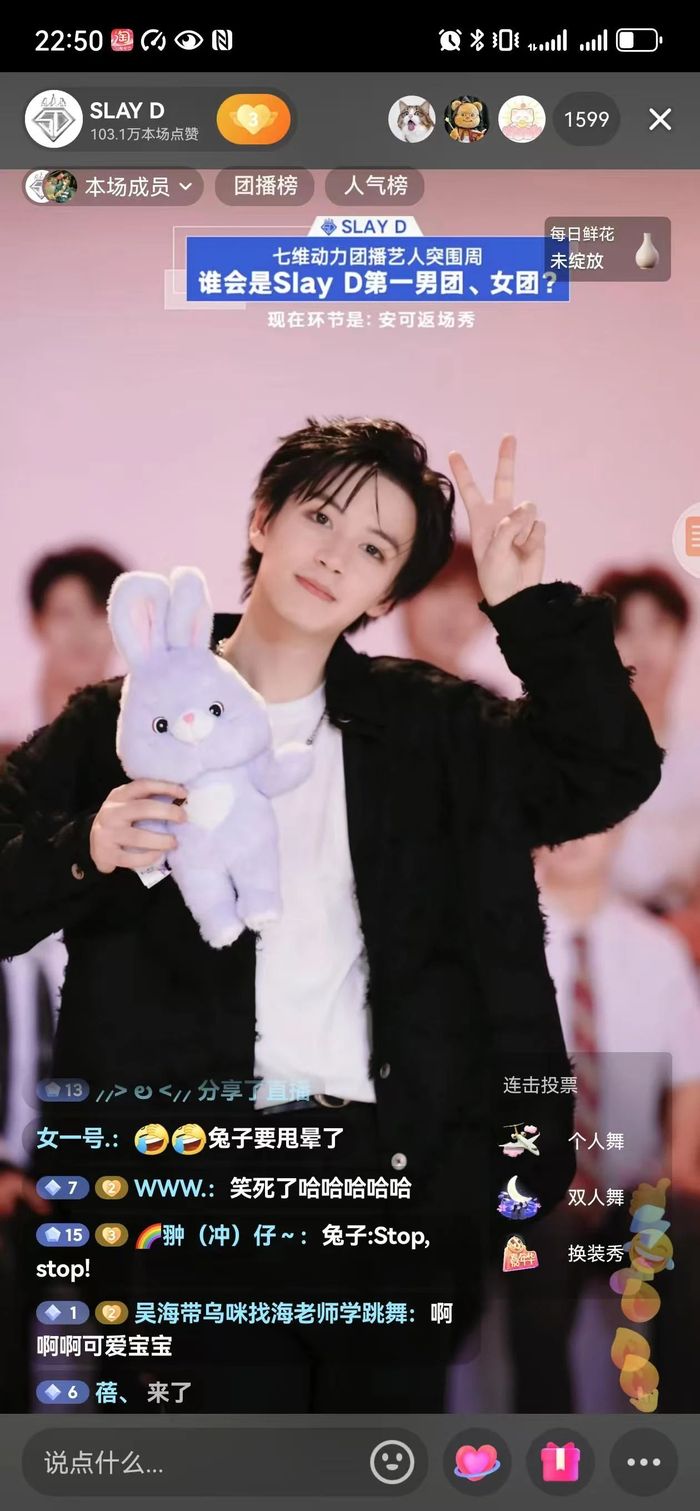 这种优势清晰地体现在SLAY D的风格上。相比标准化的团播,小娱看SLAY D更像在看一场打歌舞台,处处都能发现综艺人的影子。