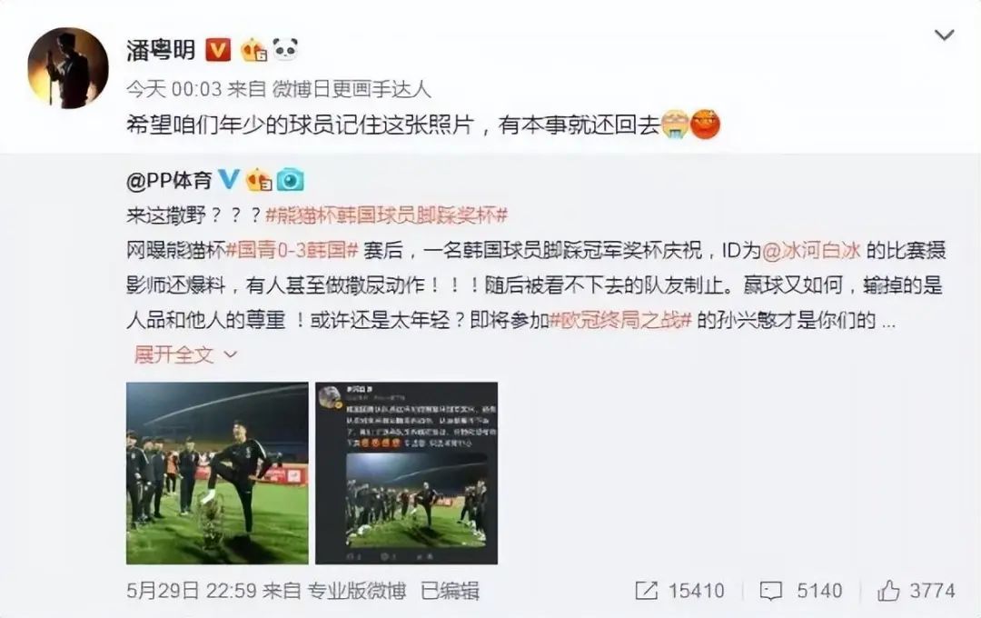 照片一出,全网都感到震惊和愤怒。潘粤明也忍不住怒斥了韩国球员的行为:“希望咱们年少的球员记住这张照片,有本事就还回去。”简单话语和表情,背后却充满了克制不了的愤怒情绪。