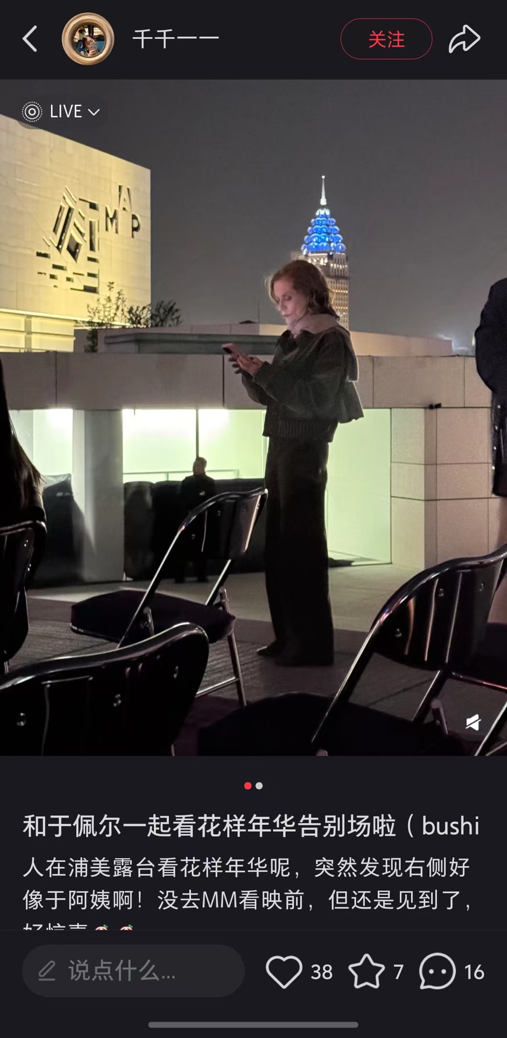 有观众在现场“捕捉”到了前来打卡的于佩尔并晒到了互联网上