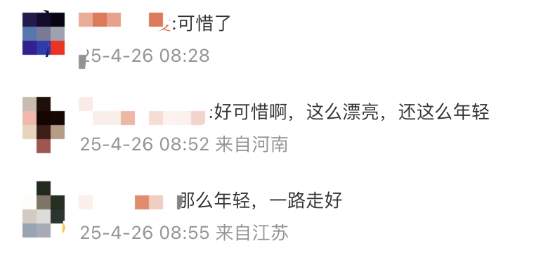 对于她的离去,不少网友表示震惊和惋惜↓