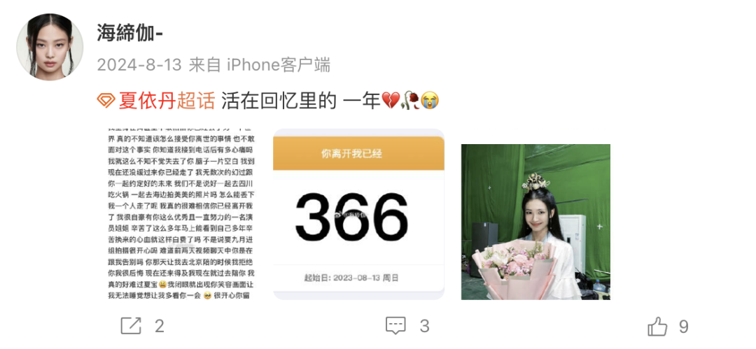 另一位朋友则在夏依丹去世一周年的时候发布了缅怀文章。