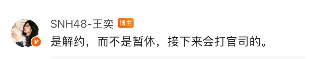 她在评论区留言:是解约,而不是暂休,接下来会打官司。