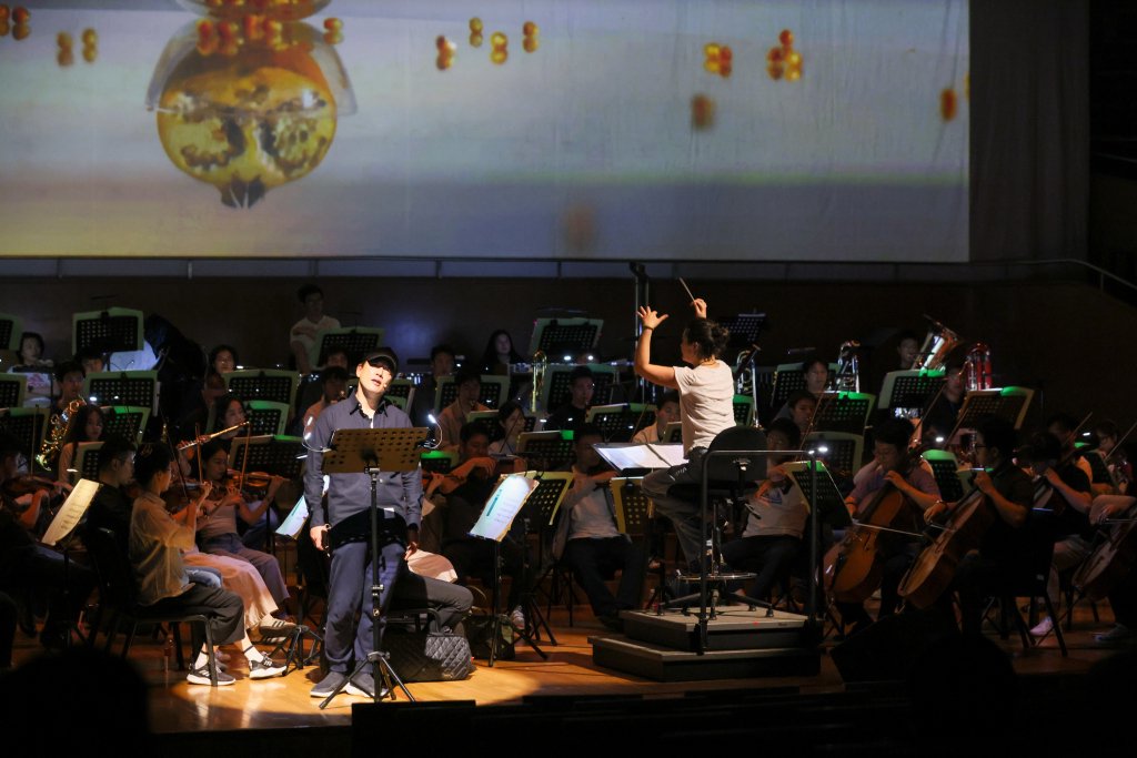 “他不会干扰我,我当他是唱歌的,是乐队的一部分。”张洁敏笑说。王耀庆的面前也摆了谱架。“谱架让我和乐团融为一体。”王耀庆把自己当成乐器,也要时刻盯牢指挥,出现在合适的节拍里。