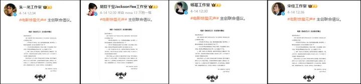 随后,易烊千玺、朱一龙、杨幂、宋佳等人的工作室先后发布了这则“倡议”。
