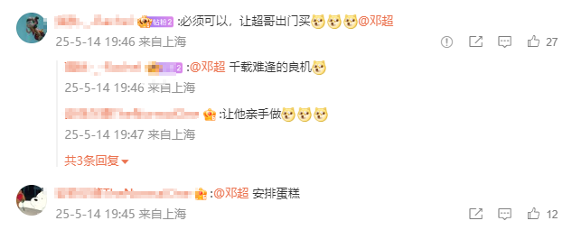 随即,网友纷纷在评论区@邓超,称“让超哥出门买”“让超哥亲手做”。