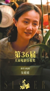 朱媛媛凭借电影《我的姐姐》中姑妈一角,摘得第34届金鸡奖和第36届百花奖最佳女配角奖。 图据朱媛媛微博