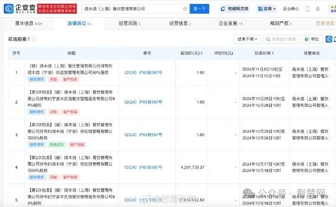 该公司名下关联多起破产拍卖信息,并已多次被限制高消费。据悉,演员张翰曾为烧本烧品牌“火星烤肉主理人”,并多次出镜宣传。