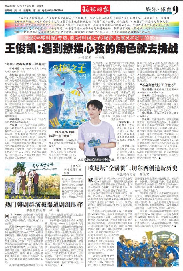 “不管生活有多残酷,总会有充满爱的瞬间。”5月30日,国产原创动画电影《时间之子》全国上映。该片由于奥、周铁男任编剧及导演,讲述冷面杀手十七与渔村少女千晓因神秘宝物“时轮”意外结缘,两人组成“一日搭子”开启奇幻都市之旅。十七与千晓在旅途中逐渐靠近,而隐藏在“时轮”背后的秘密,也悄悄牵动着他们的命运走向。王俊凯在片中为男主角十七献声,近日接受《环球时报》记者专访时,他分享了首次为动画电影配音的体验,畅谈演艺道路上的感悟。谈及未来工作重心,他说:“遇到撩拨我心弦的角色就一定会去挑战,遇到想唱的歌就一定会去唱,当下的目标就是做好眼前的工作。”
