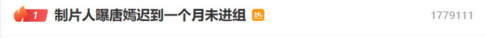 6月10日,话题#制片人曝唐嫣迟到一个月未进组#登上微博文娱热搜第一。