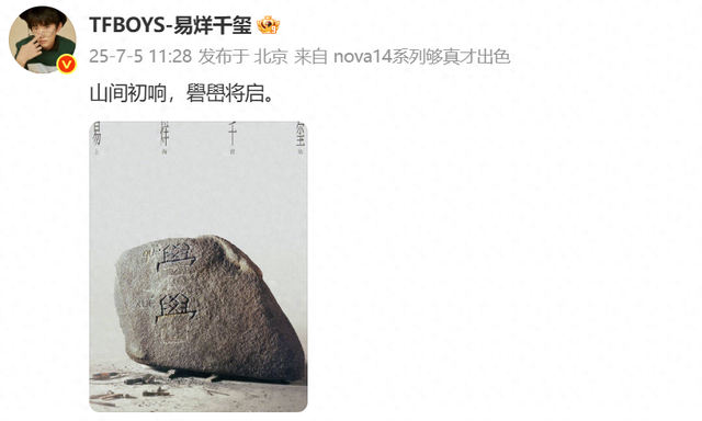 “礐”(què)蕴含疾风激水、山石坚硬的意象,“嶨”(xué)则描述了山中巨石嶙峋的自然景观。二字组合,扑面而来的是力量感、坚韧感与自然磅礴之气,呼应易烊千玺新EP《楔石》的“ 楔入山石” 概念,象征坚韧与突破。
