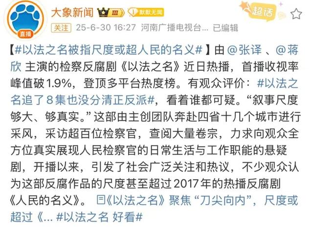 然而,7月9日,随着该剧迎来大结局,有关“《以法之名》 烂尾”的讨论,冲上微博热搜。