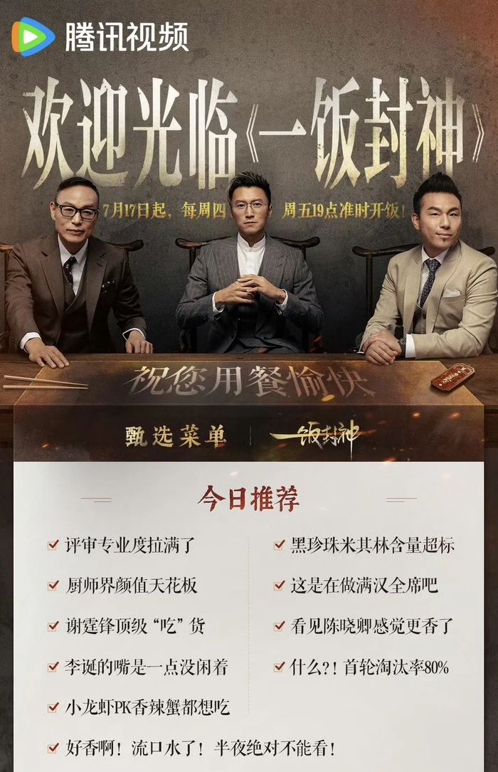 单从这般配置就足以看出,腾讯视频为了最大程度确保《一饭封神》重演“封神”故事,几乎是下了“血本”。