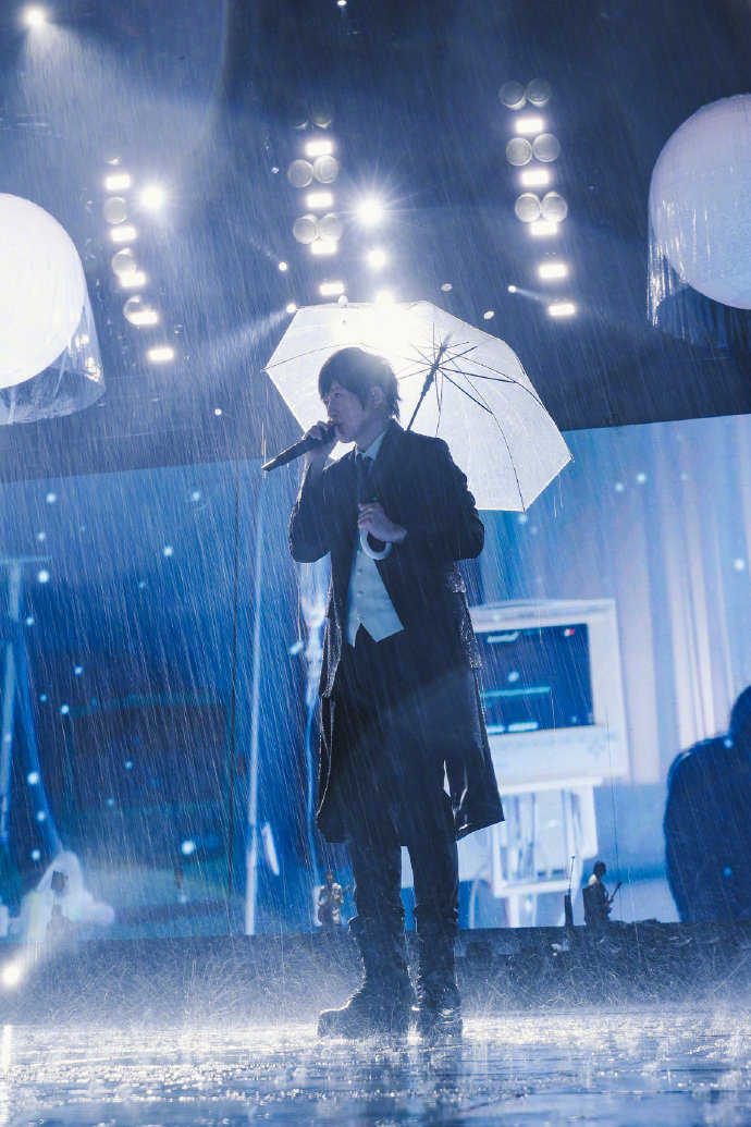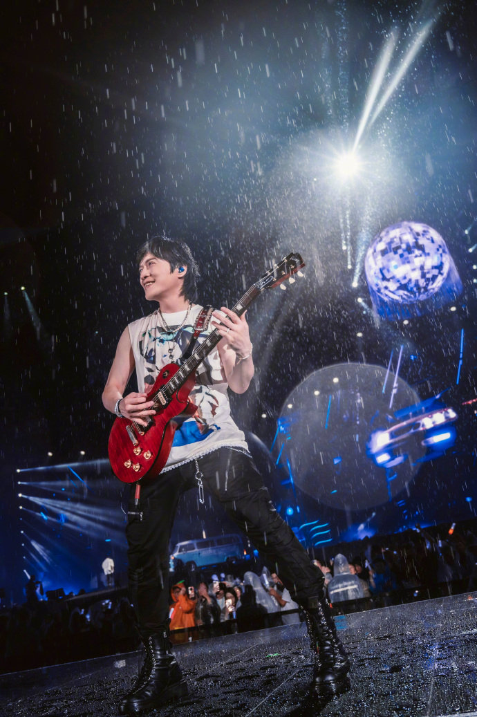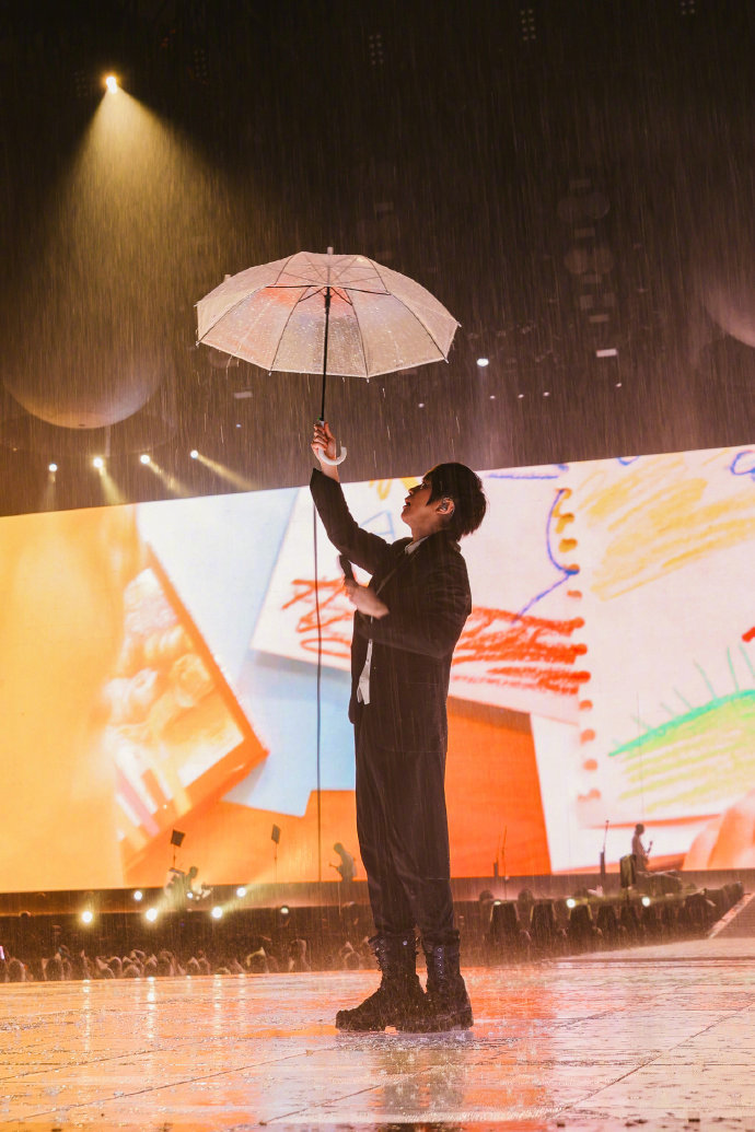 主唱阿信延续了他一贯的细腻和温暖,几句对话便触动全场。“我发现我们多了好多的新朋友,好多的新面孔!”他随即向台下抛问:“有没有今天是你人生中第一场五月天演唱会的?”在得到热烈回应后,他故作“埋怨”得调侃:“那我们轻轻地问一句,以前为什么不来?”话音未落便真诚道谢:“今天无论如何还是非常感谢你们来,因为总有一首歌让你们认识我们,结下了这场孽缘。”紧接着,他话锋一转,带着心疼解释道:“为什么好好的一段缘分,要说成孽缘呢?抢票,辛苦!交通,累!尤其是开场的时候还要淋一场大雨,你们说累不累?”最后,他深情告白:“这一场大雨淋在你们身上,淋在我心上。”