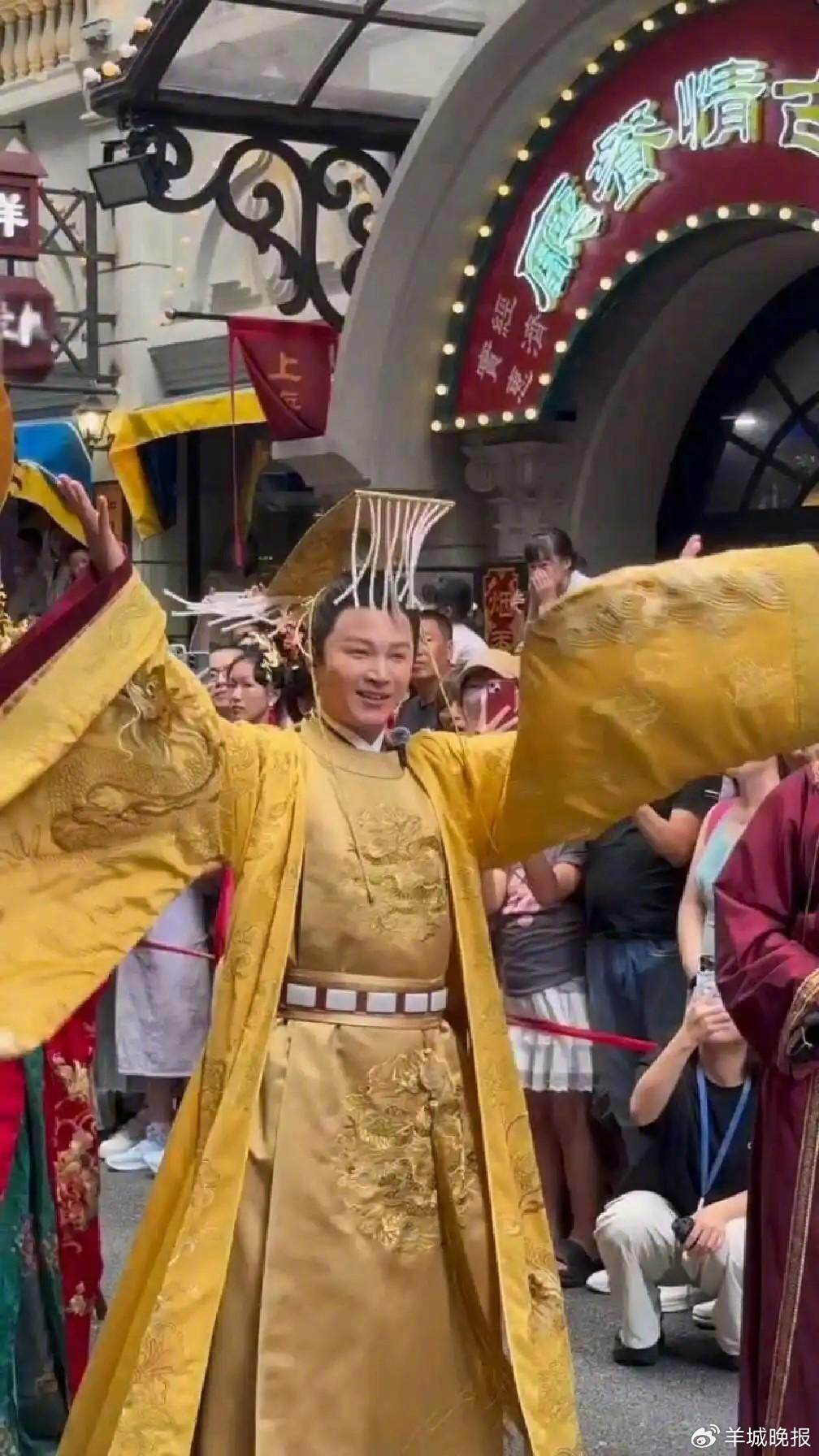 49岁的郑国霖最近也以“李世民”的妆造亮相上海景区千古情,与游客们热烈互动。现场视频显示,有游客打趣称“要万亩良田养你”。有网友表示“明星都出来上班了”,还有网友表示自己在现场,“对郑老师路转粉了”。公开资料显示,2009年,郑国霖凭借历史剧《隋唐英雄传》中的李世民一角在众多主演中脱颖而出,本人也再次走红。