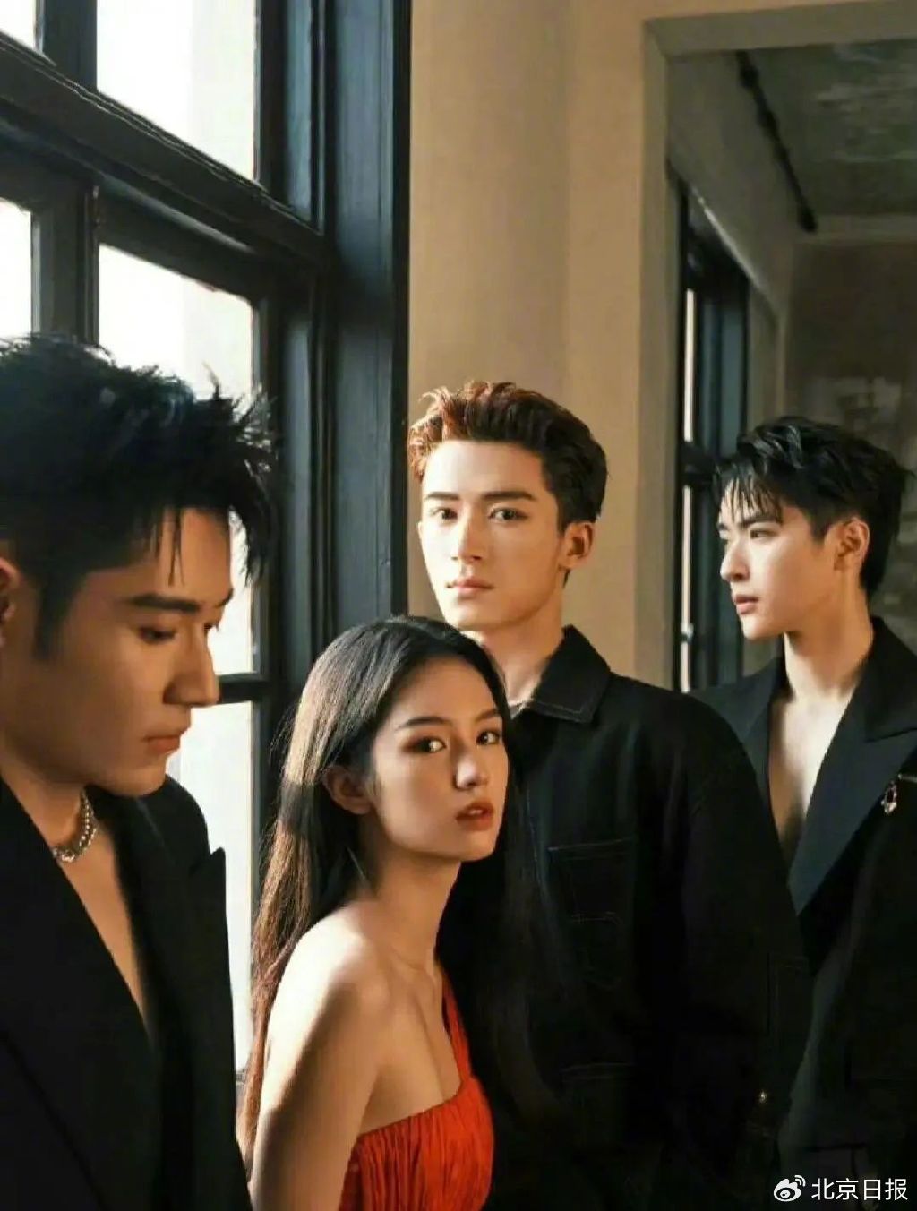 古装剧《为有暗香来》播出时,她和剧中男演员拍时尚大片,三个男人加起来不及周也一个人帅。