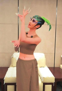 肖蓉浩演示孔雀手。