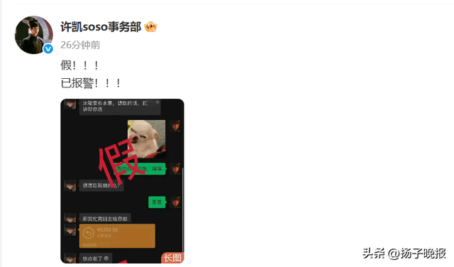 目前,许凯工作室已否认恋情:假!已报警!!
