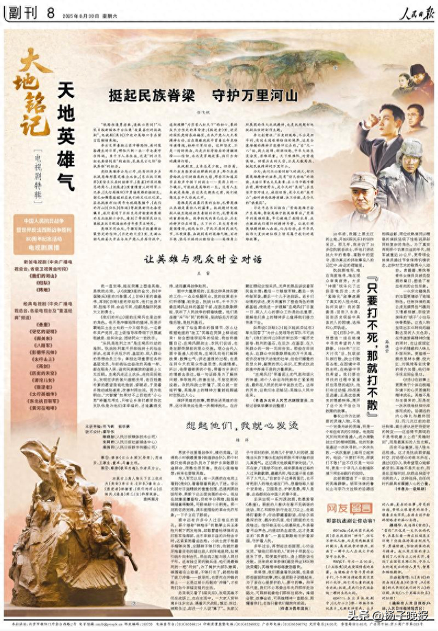 我常想,我们愿意看抗战剧,也是借那些画面和故事,把心里那股子劲提起来,为了装在心里要护的人、要守的事。和平年代里,我们不必再像当年先烈那样赴汤蹈火,可照样能像他们那样往前冲。烽烟会散,故事会老,可英雄精神一直都在,照耀着我们,也指引着我们继续向前进。