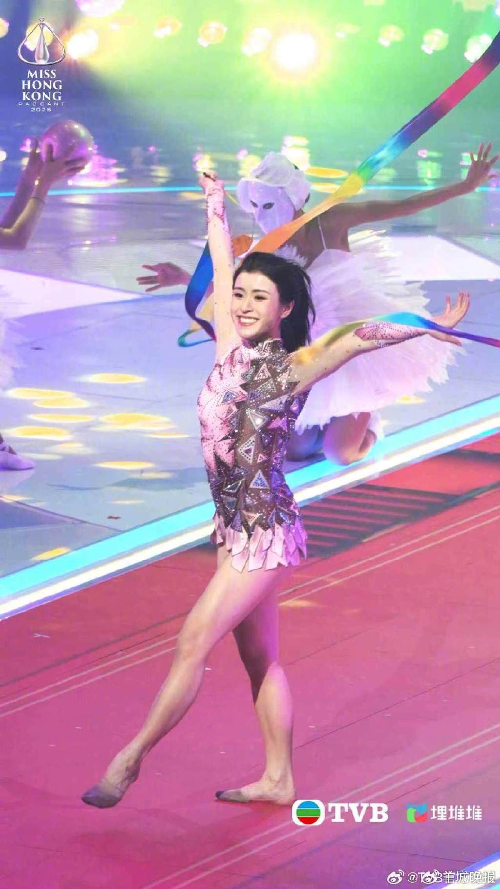 冠军陈咏诗硕士毕业于美国哥伦比亚大学,目前在在伦敦大学学院(UCL)读博;她同时也是前香港艺术体操队代表队队员,称得上“文武双全”。港姐决赛当晚,陈咏诗在才艺环节带来球操、丝带等艺术体操表演,令现场观众大开眼界。这场表演丝毫不比专业比赛容易,她对记者说:“比赛场地有软垫,但港姐舞台是硬地板。彩排时,我的膝盖和手脚都撞出淤青,今天上场前涂了好多遮瑕才盖住。”