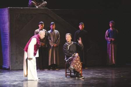 为什么要给白景琦加入武打动作?因为这是真人真事。吴樾说到这里,刘佩琦也频频点头。吴樾揭秘:“白景琦的原型、同仁堂掌柜乐镜宇先生,打小练武术,86岁的高龄,遇谁犯了错,他就来一个摆莲腿。别人打人是伸手,一个嘴巴子,而乐镜宇是用腿,多像一个老顽童。”吴樾边说边用右腿比画了一个摆莲腿,坐在一旁的刘佩琦很配合地做了一个挨打的表情。“所以我们是尊重原型的。陈宝国在电视剧里也有表现功夫的画面。我们在《大宅门》话剧舞台上,高度还原了白景琦这个人物的特点,属于潻彩的部分。”