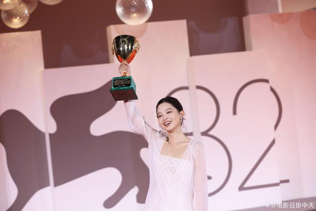 辛芷蕾手握威尼斯电影节最佳女演员奖杯