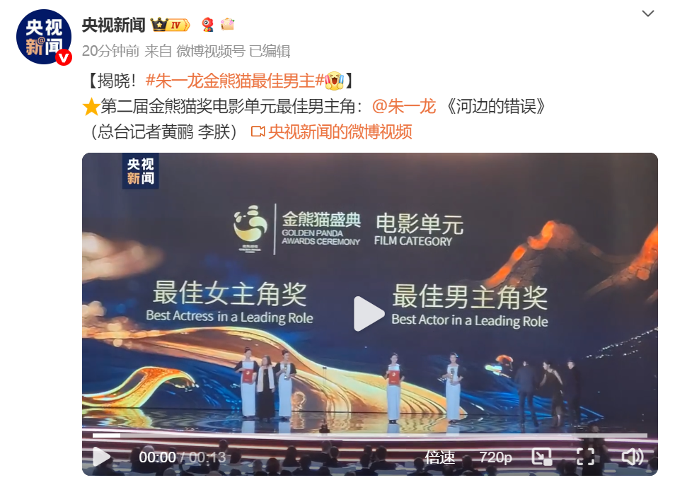 第二届金熊猫奖电影单元最佳男主角:朱一龙 《河边的错误》