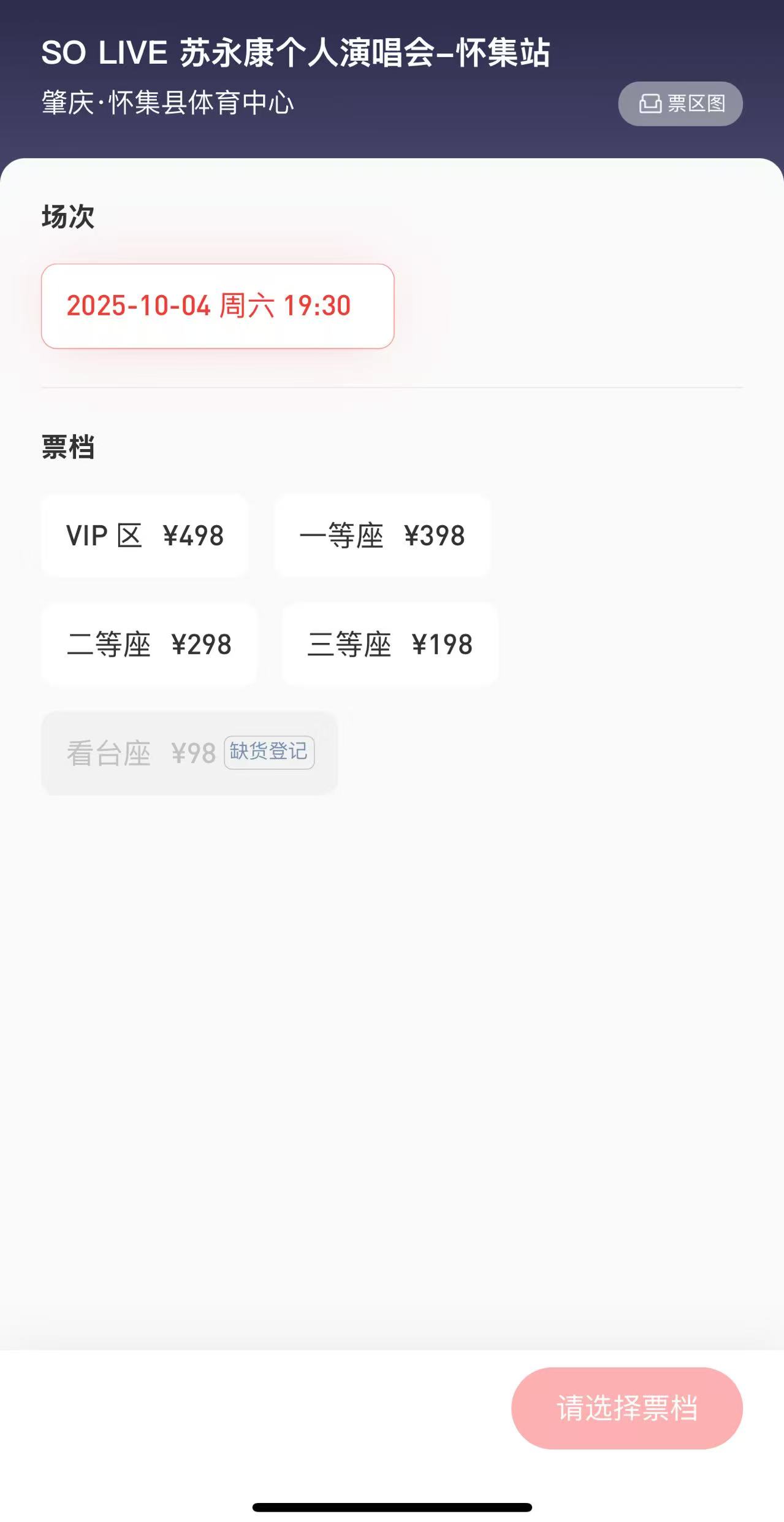 界面新闻查阅发现,除了温州,苏永康“So Live”2025巡回演唱会广东怀集站也将于10月4日举办,9月8日开启售票,票价98元到498元不等。目前98元的看台票已经售罄,演唱会举办地点在肇庆怀集县体育中心。此前,9月8日下午,“SO LIVE 苏永康个人演唱会—怀集站”新闻发布会在怀集新世界大酒店召开。