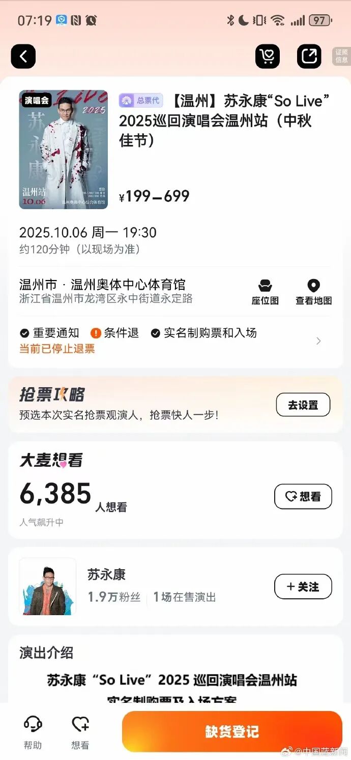 原标题:《被网友投诉,大麦网已下架苏永康演出》
