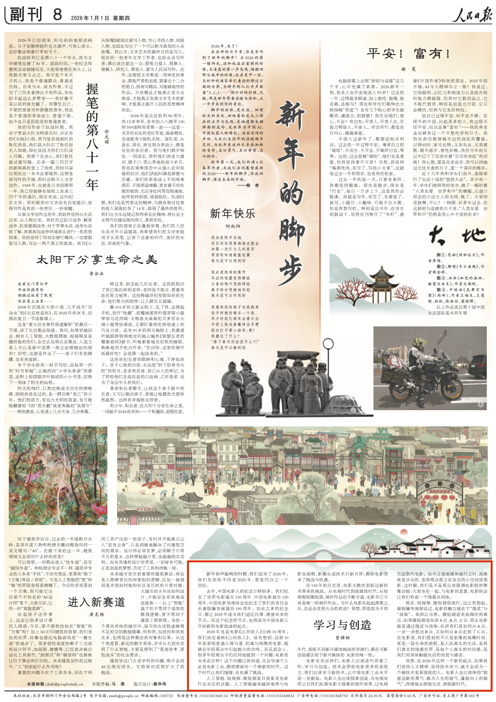 2026年1月1日,《人民日报》第8版刊发导演贾樟柯的文章《学习与创造》。