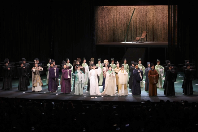 在这一版《苏东坡》里,“青春力量”确实让人瞩目。作为浙江小百花和百越文创联合出品的作品,舞台上,演员阵容涵盖“原生代+中青年+00后”五代小百花人,章益清、周艳、李霄雯、徐叶娜等中青年演员在台上个个都极具光彩,展示了浙江小百花强大的整体实力和艺术质感。