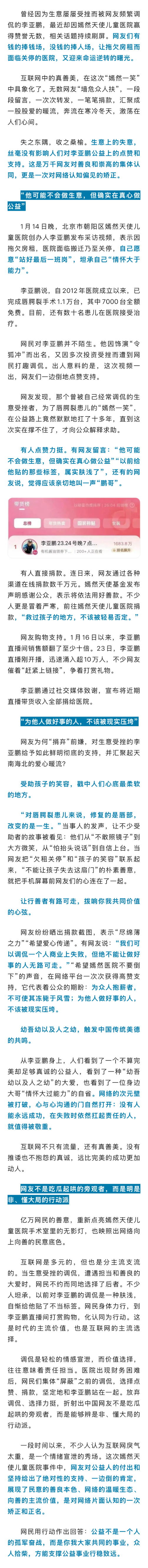 1月26日,新华社发文评李亚鹏——《生意屡挫的李亚鹏,何以“嫣然”而“天使”》。