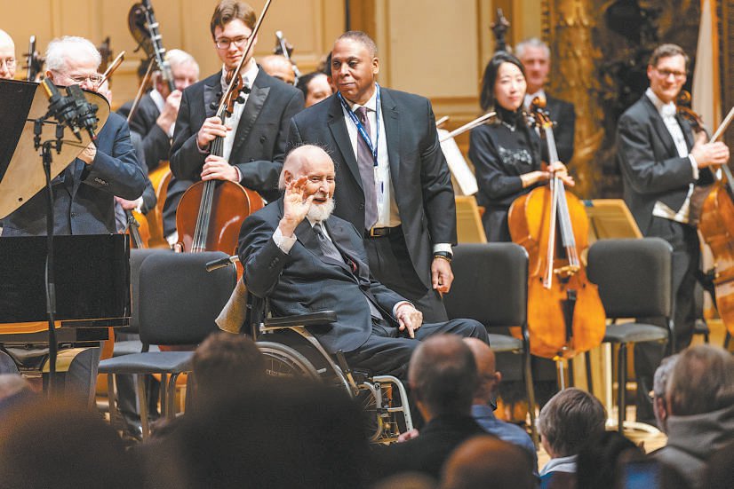 1月22日,百年一遇的暴风雪席卷美国南北,却阻挡不了人们出门听音乐会的热情。波士顿交响乐团在波士顿交响音乐厅举办约翰·威廉姆斯专场音乐会,大批电影、音乐爱好者纷纷前往。这位2月8日年满94岁高龄的作曲家,特意从加利福尼亚飞抵波士顿,上下半场结束时都坐着轮椅上台谢幕,接受满场观众潮水般的掌声。这场音乐会只是同一套曲目的三场音乐会中的第一场——自1月22日至24日的三场音乐会,既是乐团为威廉姆斯打造的专场,也是庆祝美国建国250周年“美国作曲家音乐节”的重要组成。这场1月上演十部美国作曲家作品的庆典中,威廉姆斯一人独占五部,扛下半壁江山,足见其宗师地位。